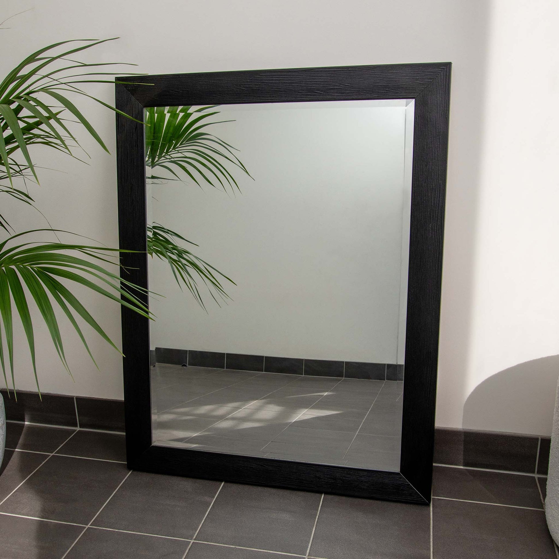 A mirror with a black frame and subtle woodgrain texture, complete with a 1-inch bevel. Perfect for adding understated, modern style to your walls.