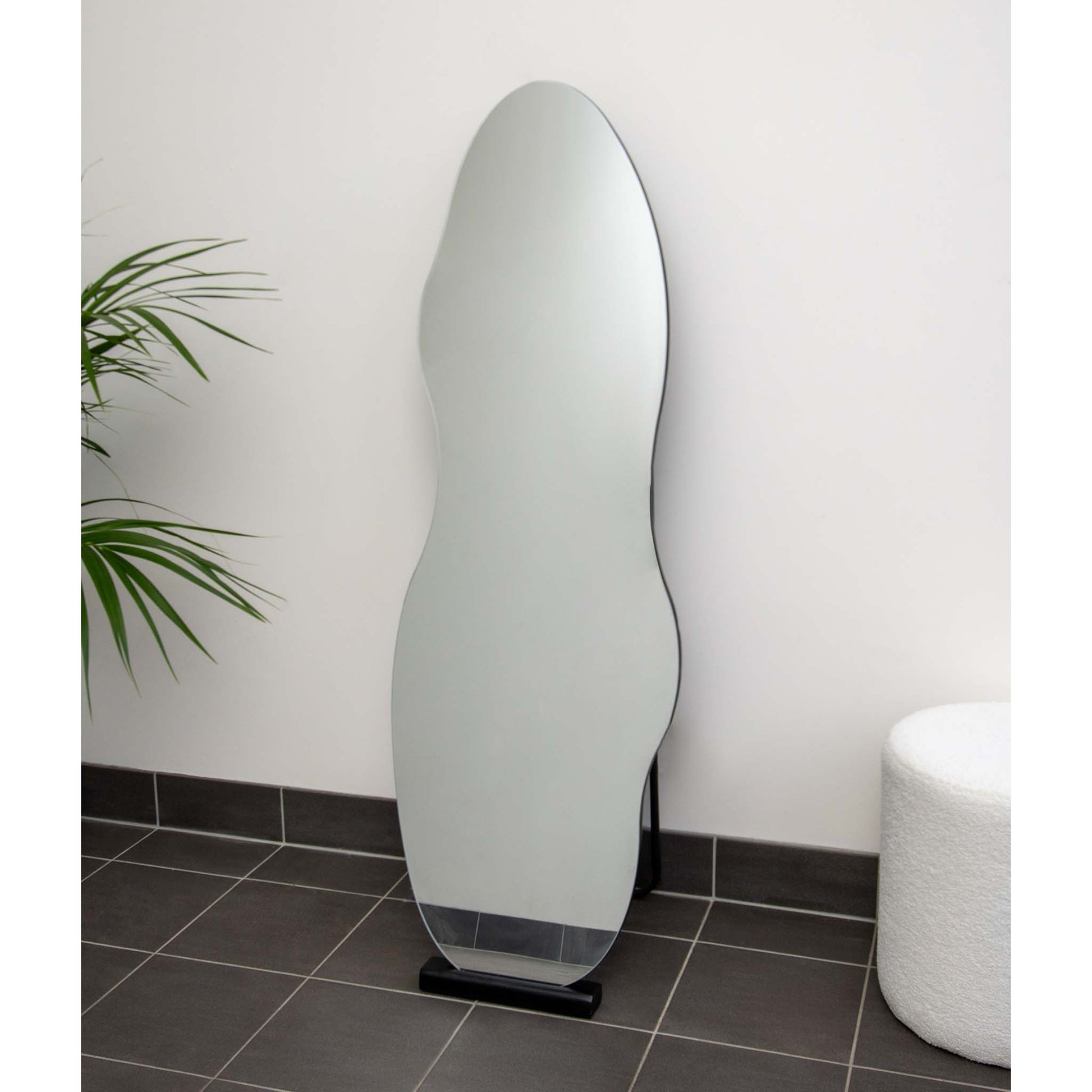 Frameless and free standing, this wavy mirror adds a trendy, sculptural touch to any space.