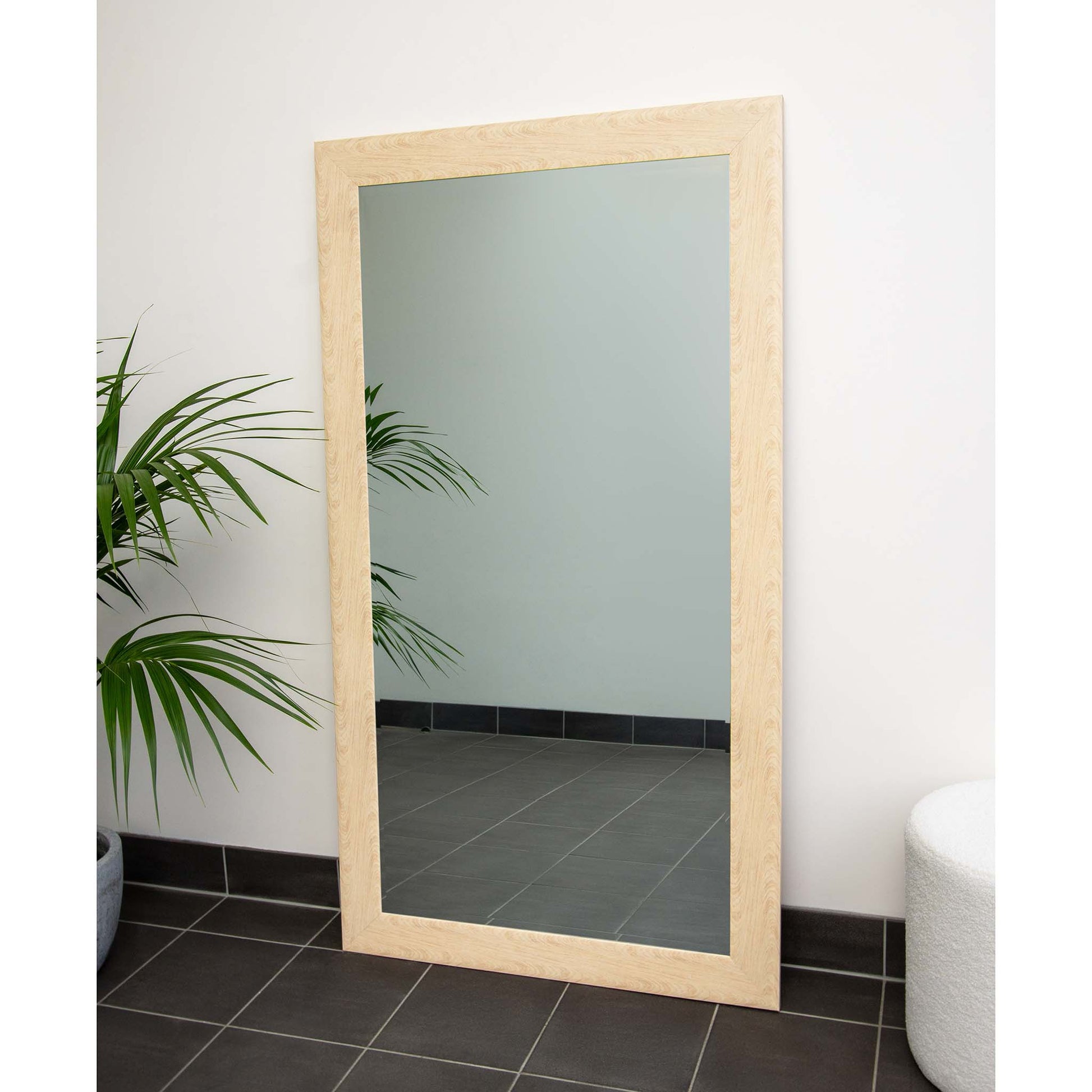 Finished in a light woodgrain effect with a 1-inch bevel, this mirror delivers clean, natural charm for any room.